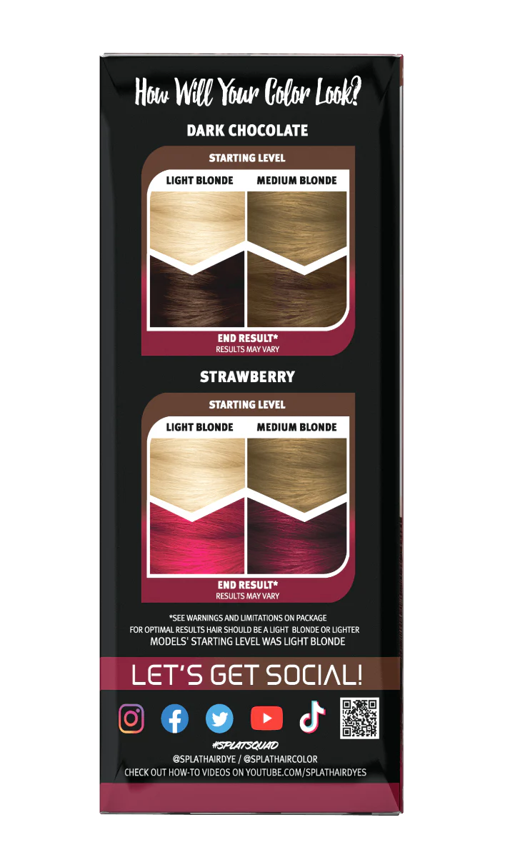 Chocolate Melts blend rich natural brown with a bold vibrant shade all in one kit. Splat brings the best of two worlds together without having to go to the salon.