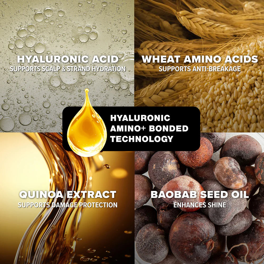 This value-size demi-permanent hair color hydrates, blends grays, and leaves hair silky and shiny for up to 30 washes. Powered by Hyaluronic Amino+ Bonded Technology, the ammonia-free creme is infused with hyaluronic acid, quinoa, baobab seed extract, and wheat amino acids to help restore strength, resilience, and vibrancy for true-to-tone color.