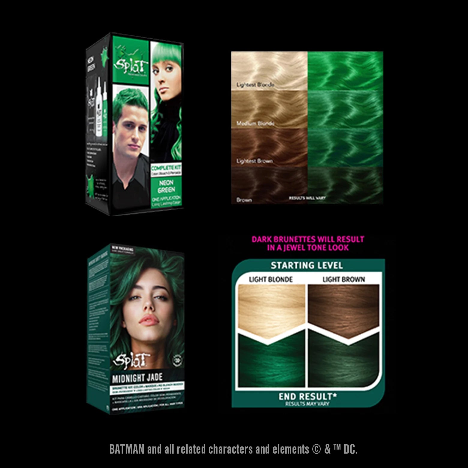 Unleash your mischievous side with the exclusive, limited-edition Batman™ x Splat® collab this season. Five collectible, giftable kits featuring iconic DC Super-Villains, bold hair color, exclusive Gotham City Sirens™ comic variants, and a Funko POP! figure.